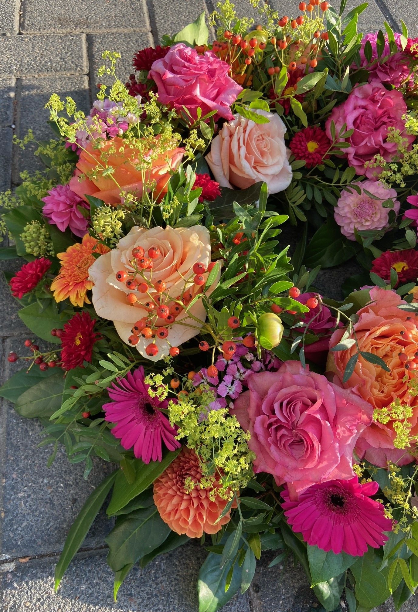 Welche Blumen hatten für Ihren geliebten Menschen eine besondere Bedeutung? Wir nehmen uns die Zeit, Ihnen zu zeigen, wie Sie Ihre Gefühle durch Blumen zum Ausdruck bringen können. Unsere Trauerfloristik reflektiert die Persönlichkeit des Verstorbenen: naturverbunden-romantisch, dezent oder sogar extravagant. Der Kranz ist nur eine Möglichkeit – wir gestalten Blumenarrangements auch als Gestecke, Sargdecken oder Urnenschmuck.